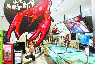 超市提供海鲜现场加工服务,顾客可以直接选购,感受现场加工的便捷。