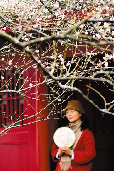 1月9日,游客在林阳寺留影。近日,福建省福州市林阳寺梅花绽放,吸引众多游客前往观赏。 新华社发