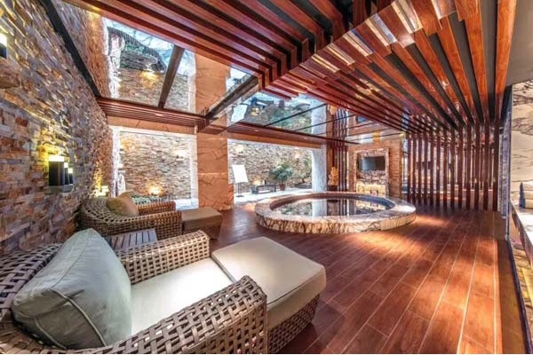 酒店倡导的是“引领绿色养生、倡导健康生活、演绎绿色休闲文化”的理念,以温泉、玉石为特色及泡汤、养生理疗为一体的高端温泉,地下温泉水与燕山山脉同出一系,采自地下1700米深处,室内室外不同区域有大大小小10多个温泉池,里面的水温会因不同的疗效而有所不同。