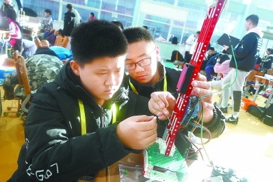 本报讯(记者张航)现场制作一部机器人,编好程序,让它自动搬运一个个边长约10厘米的正方体,堆砌成一座高塔,看哪部机器人堆砌的高塔更高、更稳……在今天上午开赛的第十九届北京青少年机器人竞赛上,新设立的“创造之塔”主题机器人智能工程挑战赛吸引众多中小学生跃跃欲试。