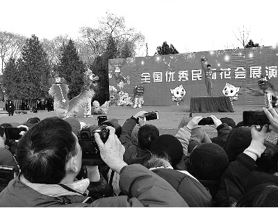 春节逛庙会是首都市民一道不能错过的文化大餐。2019年春节,北京各大庙会活动注重传统文化与现代生活的结合,庙会上火红的灯笼、五彩的风车伴随着激昂的鼓乐、欢快的舞蹈营造出欢乐祥和的节日气氛。图为北京地坛庙会上的精彩民俗表演。本报实习记者 刘海红 摄