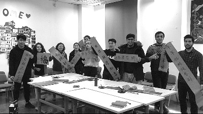 春节期间,河南郑州西亚斯学院组织汉语教师手把手教留学生写对联,让外国友人感受中国传统节日的魅力。图为留学生展示自己手写的春联。本报驻河南记者 张莹莹 摄