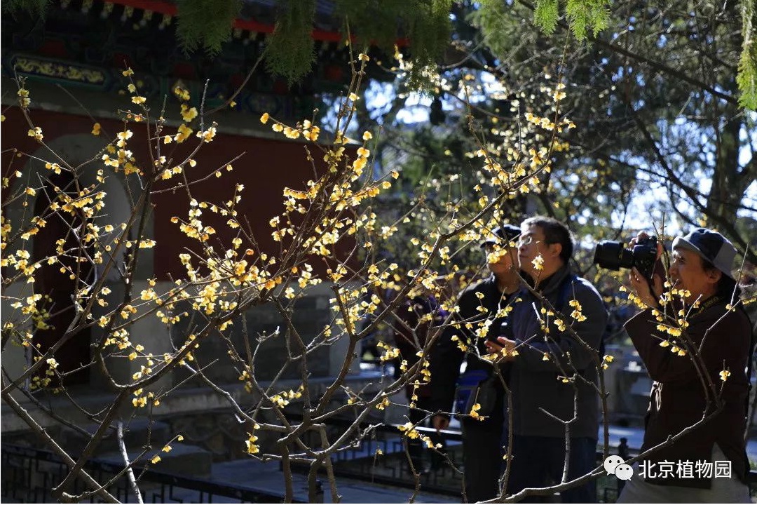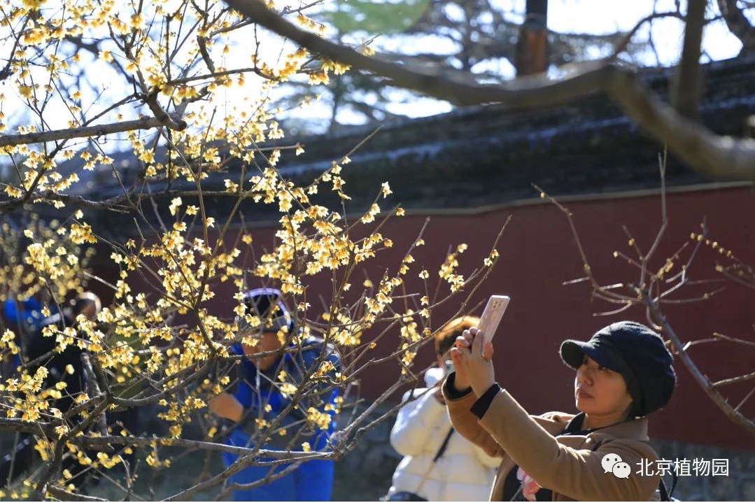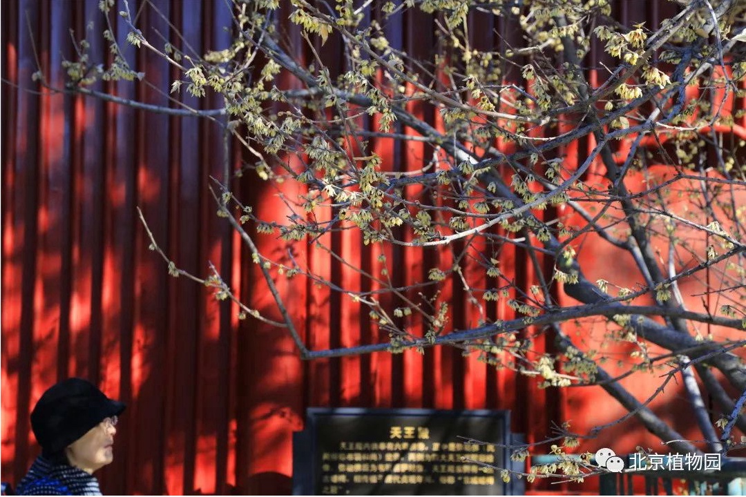 位于卧佛寺正值盛花期的蜡梅,是大部分游客的首选赏花场所。散发阵阵幽香的黄色小花,在蓝天红墙的映衬下,给人以视觉嗅觉的双重享受。