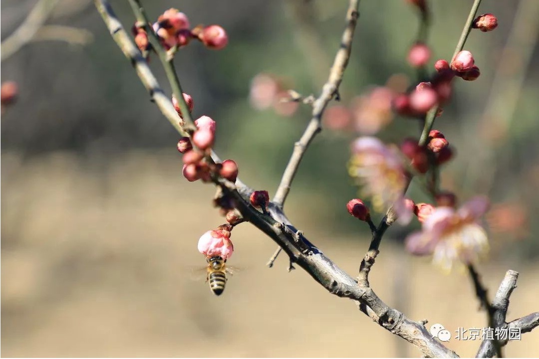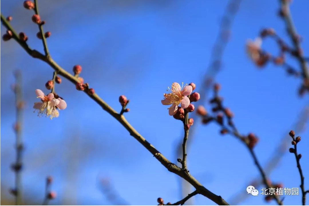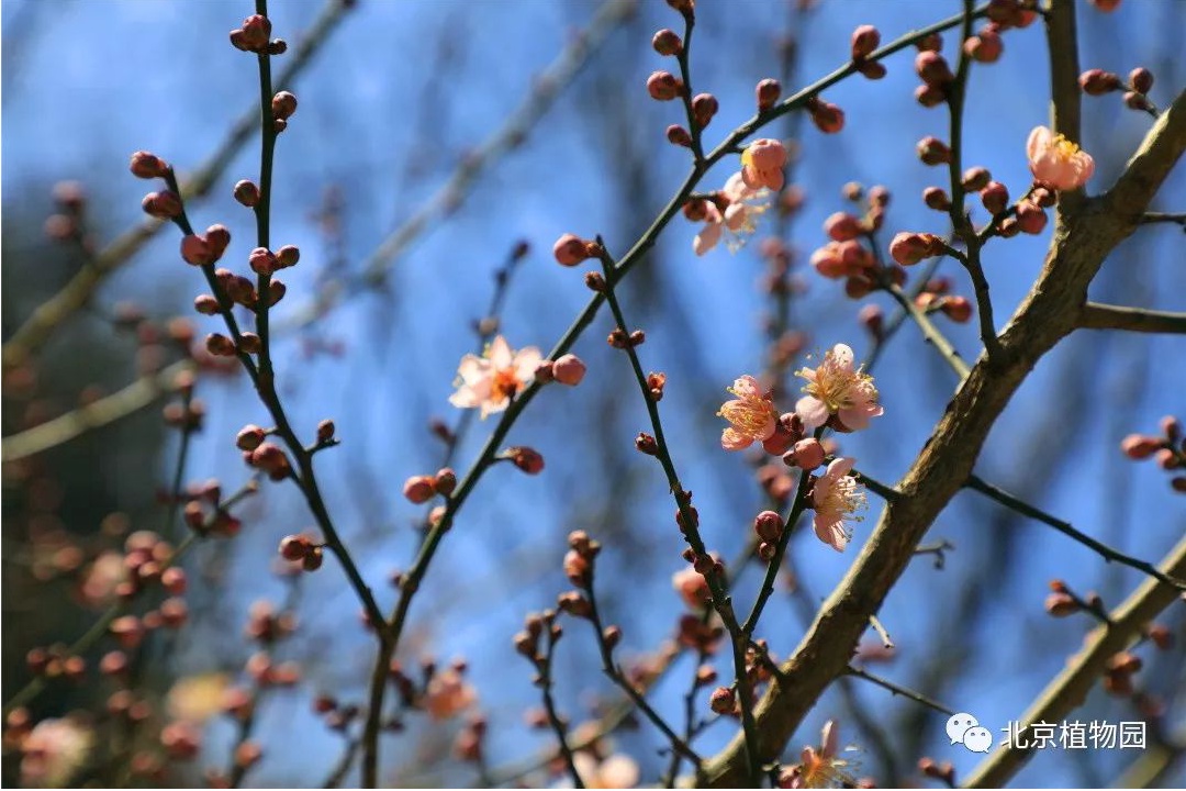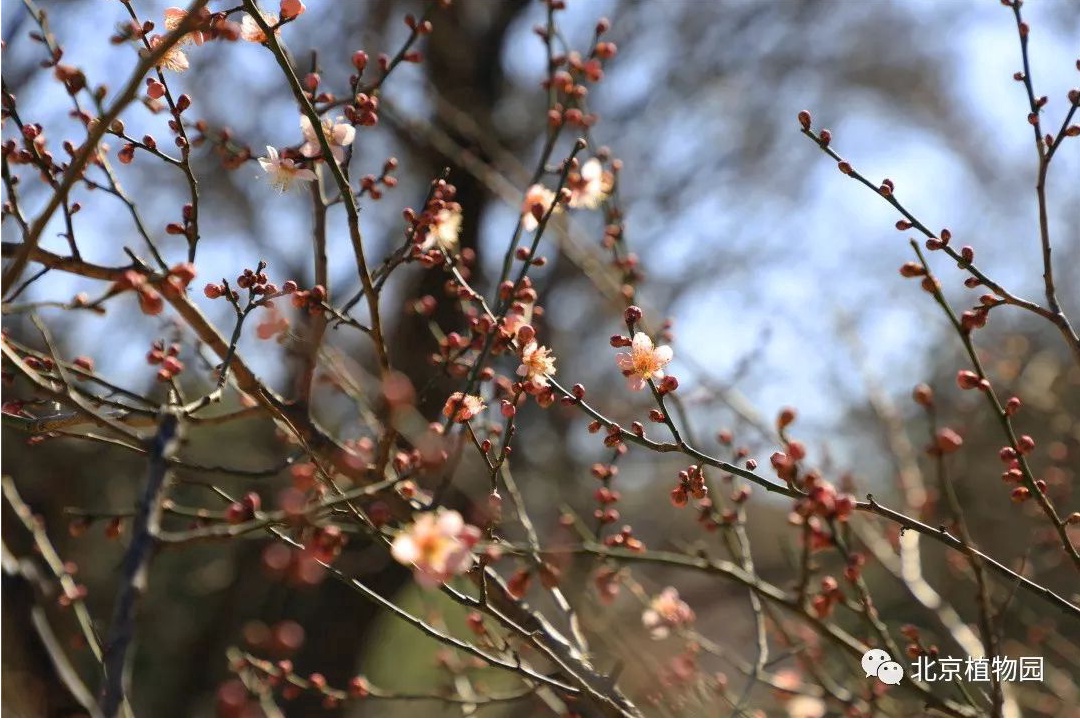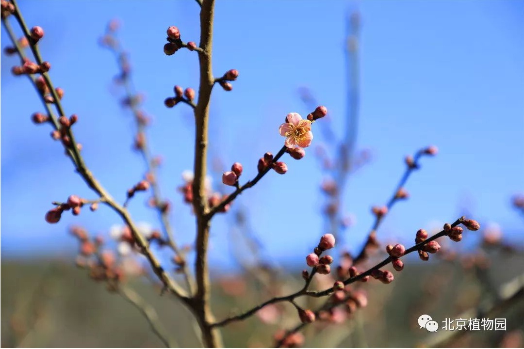 在卧佛寺西北方向的梅花文化馆周边,几株“心急”的梅花已经率先绽放,携带着含苞待放的娇羞,为早春增添亮丽色彩。
