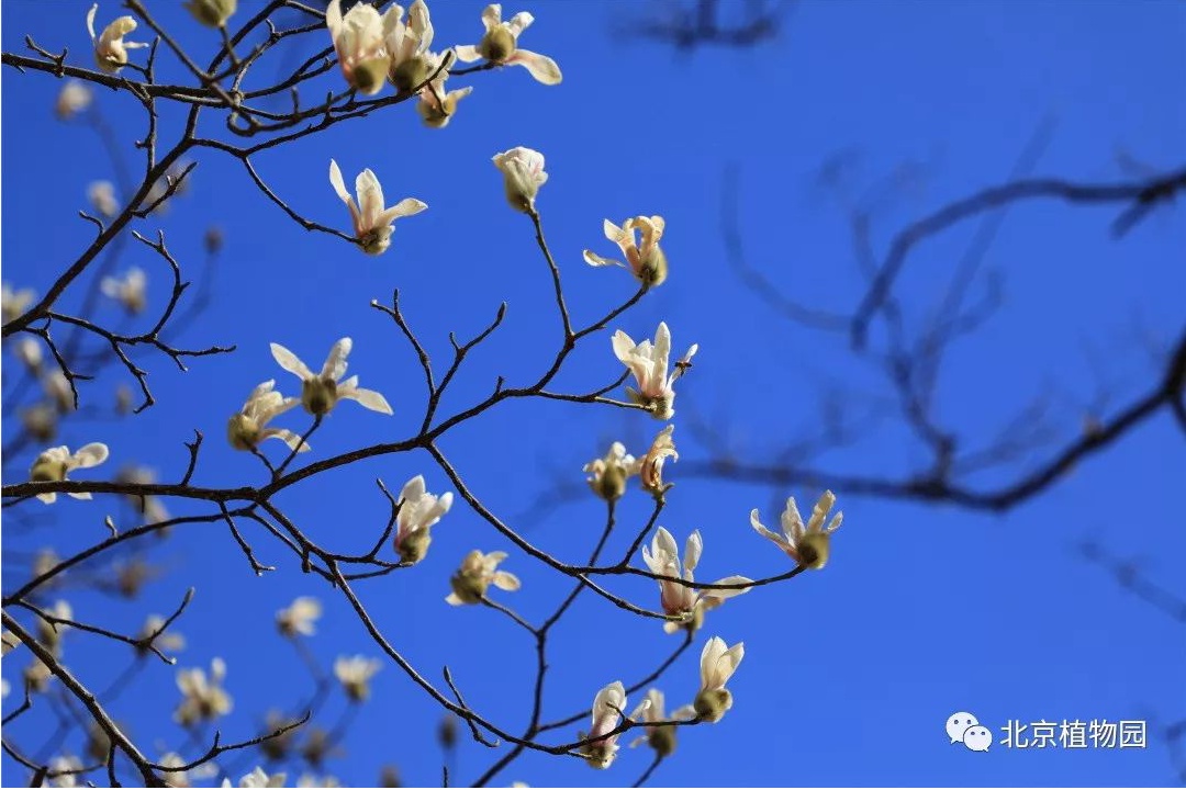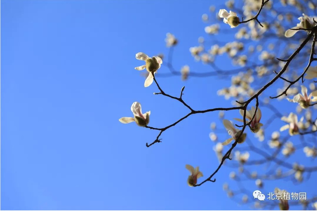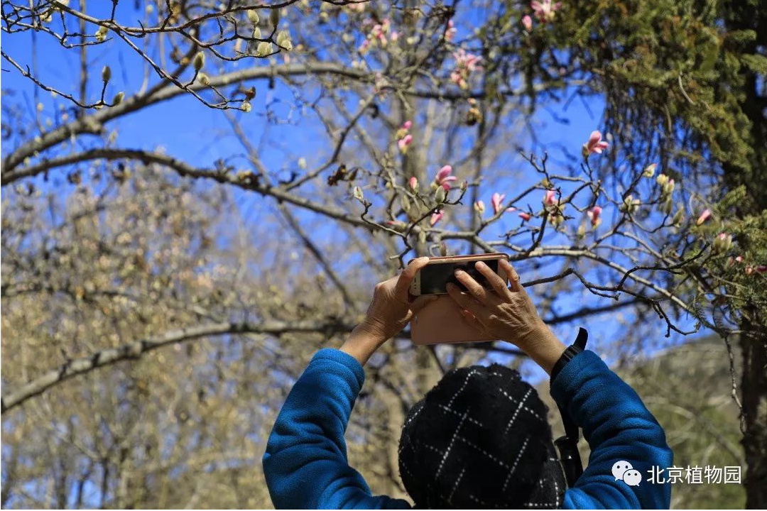 位于卧佛寺东侧的树木园广场处,一株株望春玉兰陆续进入花期。玉制般的花朵,在蔚蓝天空的衬托下,仿若亭亭玉立、翩然起舞的少女,吸引着往来游客驻足欣赏。