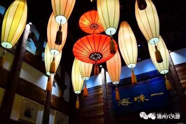 梦泽水乡是一家标准的淮扬菜,可与其他地方不同的是,它把饭桌挪到了船上,尤其是配合着江南的纸伞与灯笼时,更是让人有种不知身在何处的感慨~