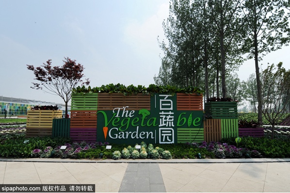 空中飘着西红柿和胡萝卜气球,大片的紫菜薹擎着簇簇黄色的小花,紫色、黄色菜心的羽衣甘蓝铺成一条条绿植带。作为世界园艺博览会展览史上第一个将蔬菜作为景观素材的独立展园,“百蔬园”展区组成了一座五彩斑斓的大花园。