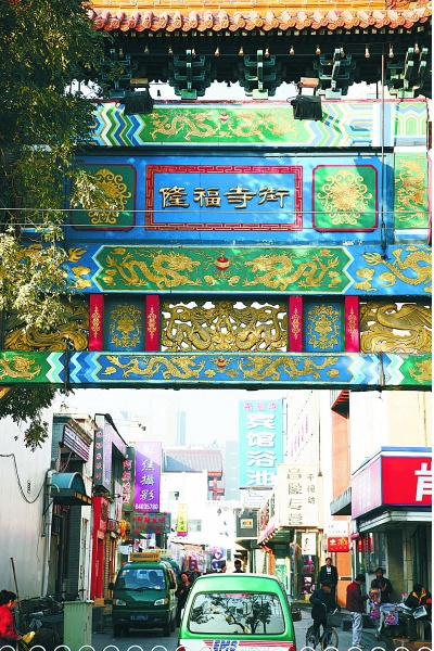 顾名思义,隆福寺街的名字当然来源于隆福寺。但隆福寺早就被拆了,好在后人在街的东头儿和南侧各建了一处牌坊,告诉来来往往的人们这里曾经拥有的过去。