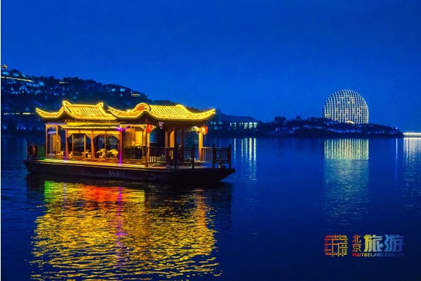 雁栖湖自然风光旖旎,而夜晚的雁栖湖景观更是独具魅力。整个水上夜航约二十分钟的航程,游客可在游船上与家人朋友共同欣赏栖湖的湖景山色,还有全球最大的灯光山水秀——雁栖湖山水夜景照明工程,感受“大山大水,水墨画卷”的美景。同时通过近距离触摸雁栖湖国际会议中心、贵宾别墅、雁栖酒店、雁栖塔和日出东方酒店等高端建筑,感受APEC会议以及一带一路论坛召开时的盛况。另外,5月18日起雁栖湖景区推出晚间免门票政策,运营时间2019年5月18日至2019年10月7日,每周五、六、日晚,经营时间从下班时间至22点以实际关灯时间为准。