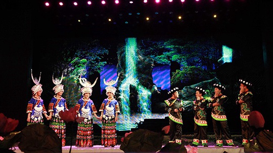 贵州省黔东南州歌舞团成立于1958年,是一个以传承、保护与发展苗族、侗族等少数民族艺术而又极具民族特色的国有专业文艺院团。建团60年以来,曾代表国家、省、州出访50多个国家和地区,受到60多位国家元首和政要的亲切接见。其表演形式侗族大歌在2009年被列入世界人类非物质文化遗产代表作名录,代表作品:侗族大歌《天地人间充满爱》、苗族舞蹈《锦鸡舞》《反排木鼓舞》。