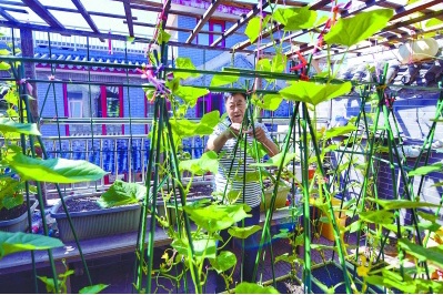 本报讯(记者朱松梅)如果在空中俯视,一定会发现融融绿意散落在朝阳高碑店村西社区的每个角落。400余户村民在自家露天阳台上开辟一方菜地,种植各色蔬菜、花卉,既好看好吃,又留住了农耕乡愁。