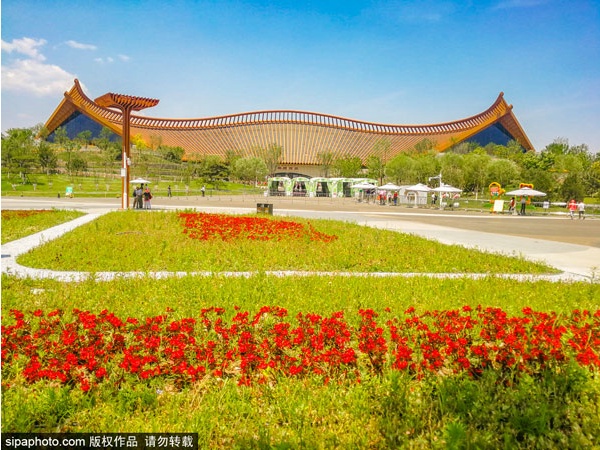 一座中国馆就是一部中国园艺文化史。坐落在世园会中心的中国馆,如一柄玉如意静卧妫水河畔,琉璃瓦色的屋面、“四水归堂”的水院,还有里里外外的各种现代绿色节能技术……无不体现出中国工匠的建筑智慧。中国馆总展览面积约15000平方米,包括中国生态文化展区、中国省区市园艺产业成就展区、中国园艺类高校及科研单位科研成果展区和中国非物质文化遗产插花艺术展区等。