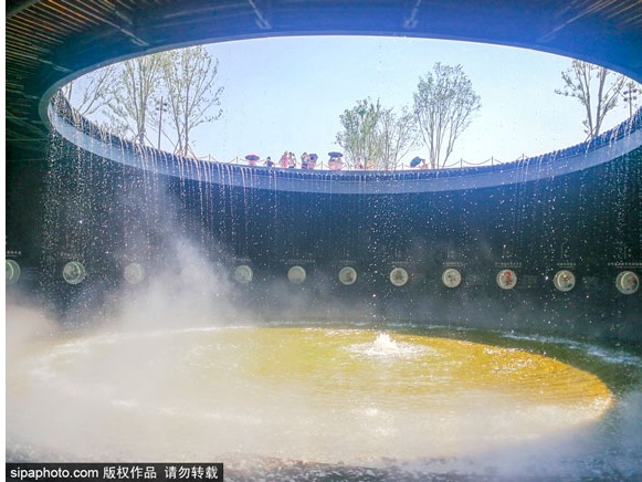 在地下一层,可以透过下沉的“水井”欣赏飞瀑,在阳光的照射下,水珠织就的“水帘”闪耀着晶莹的光彩。