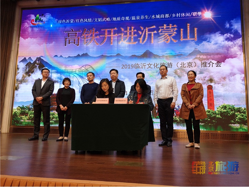 参会嘉宾观看了《空中游沂蒙》旅游宣传片,临沂市文化和旅游局工作人员重点对特色文化旅游产品进行了宣传推介,临沂、北京两地旅游企业代表现场签订了合作协议。