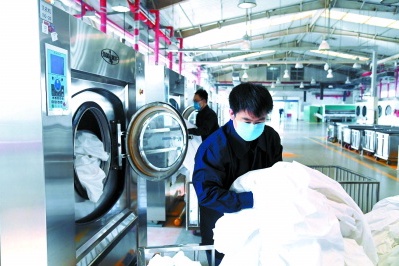 张永洁介绍,新型冠状病毒疫情发生后,洗涤车间对卧具的洗消过程也进行了调整,现在的消毒程序更多了。在消毒用料上加大投入,保证卧具使用安全。
