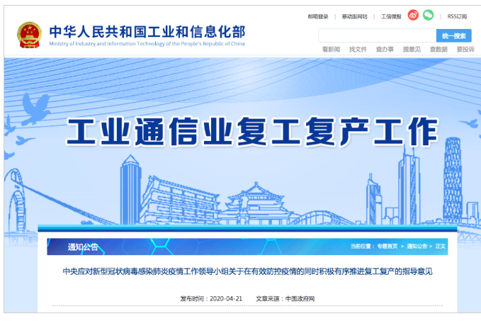 在《中央应对新型冠状病毒感染肺炎疫情工作,领导小组关于在有效防控疫情的同时,积极有序推进复工复产的指导意见》中提到。