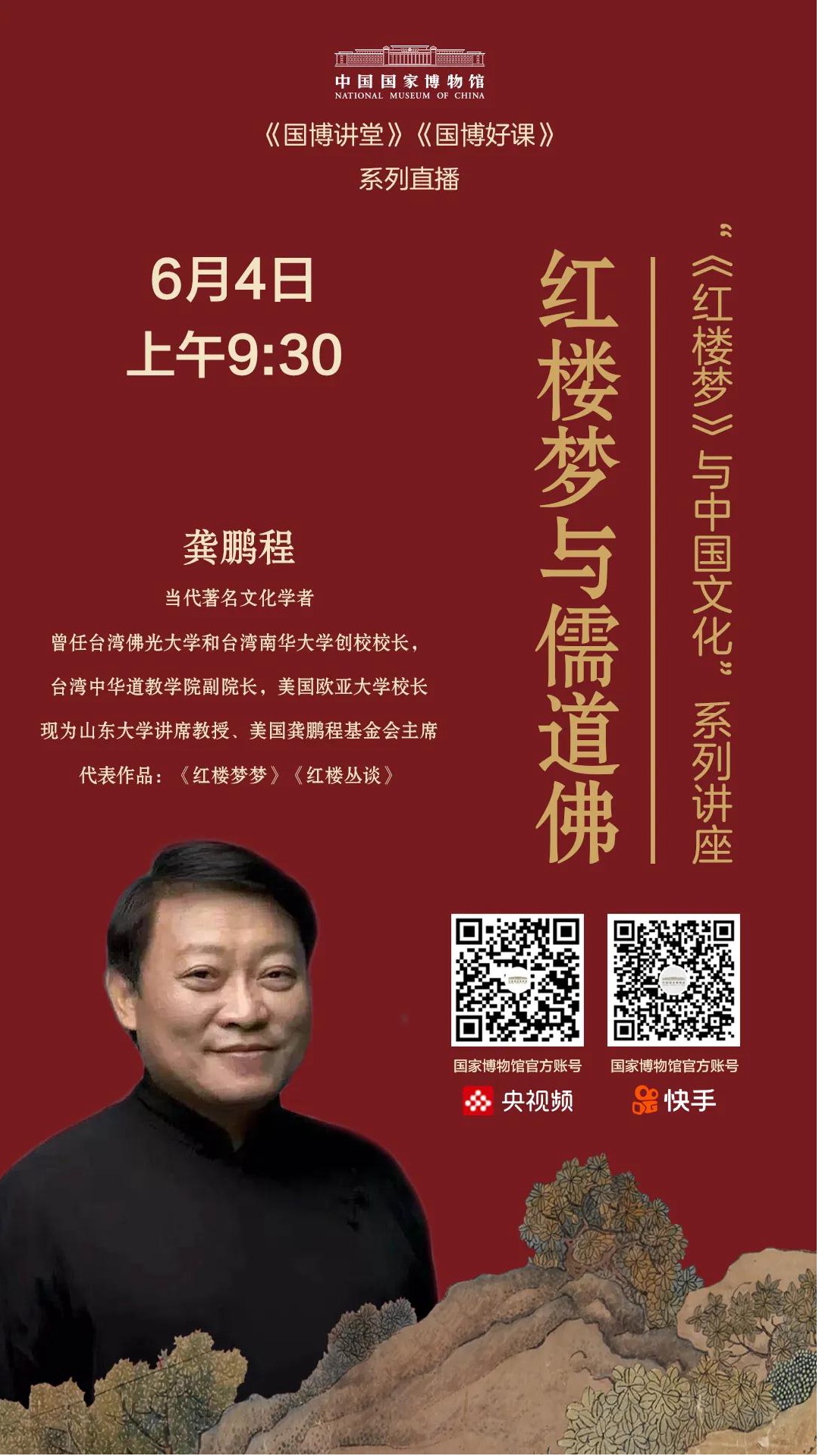 国家博物馆的系列直播“国博好课”又出新的直播课了,本次邀请的主讲人是当代著名文化学者龚鹏程,本次直播课的主题是“《红楼梦》与中国文化”系列讲座之【红楼梦与儒道佛】。