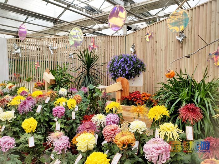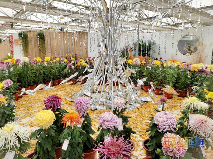 随着新一代中国青年视野的成长、对传统文化的重新发现,以及“国潮”风的盛行,不少90后、00后重新发现了国风之美。为更好的配合此次菊花擂台赛,顺应时代潮流,本次菊花展我们采用多种现代元素进行设计,例如极具现代与时尚感的镭射元素,在光线的照射下,折射出五彩的颜色。再配以颜色绚丽的精品大菊花、盆栽小菊以及多种绿植,将传统菊花与时尚潮流元素相碰撞,产生一种奇妙的化学反应,打破大众对赏菊的刻板印象。