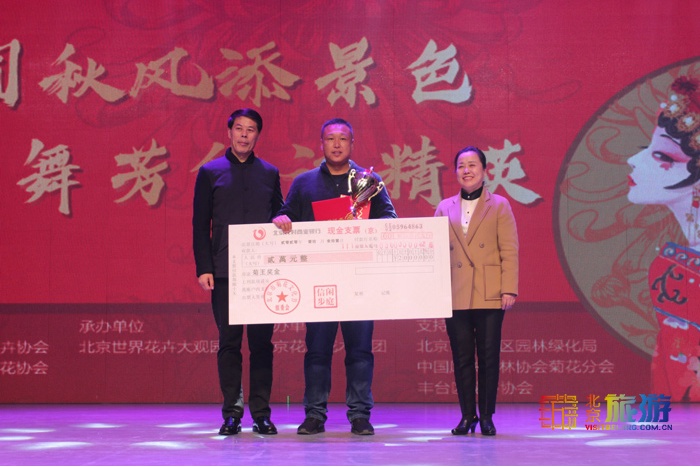 【北京旅游网报道】2020年10月31日,世界花卉大观园第十一届菊花擂台赛在中国插花艺术博物馆落下帷幕。来自全国各地39家单位及个人选送了共1500多盆菊花参加本次大赛,经过专家评审及现场嘉宾投票,最终开封市汴京公园选送的“墨王”夺得头筹,荣获菊王称号,网络评选中世界花卉大观园选送的“红衣锦裙”获得菊魁的桂冠,北京市园林绿化局副巡视员贲权民、北京市园林绿化局(首绿委)工会主席侯雅芹等一行领导出席活动并为获奖选手颁奖。