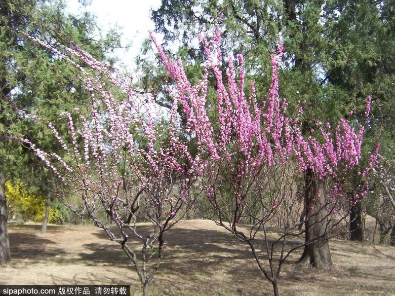 香山公园的“梅谷”位于公园眼镜湖南侧的山路旁,这里汇集了素心、磬口、狗牙等不同品种的数十株蜡梅,以及其他品种的梅花百余株,是香山公园主要的赏梅地点。