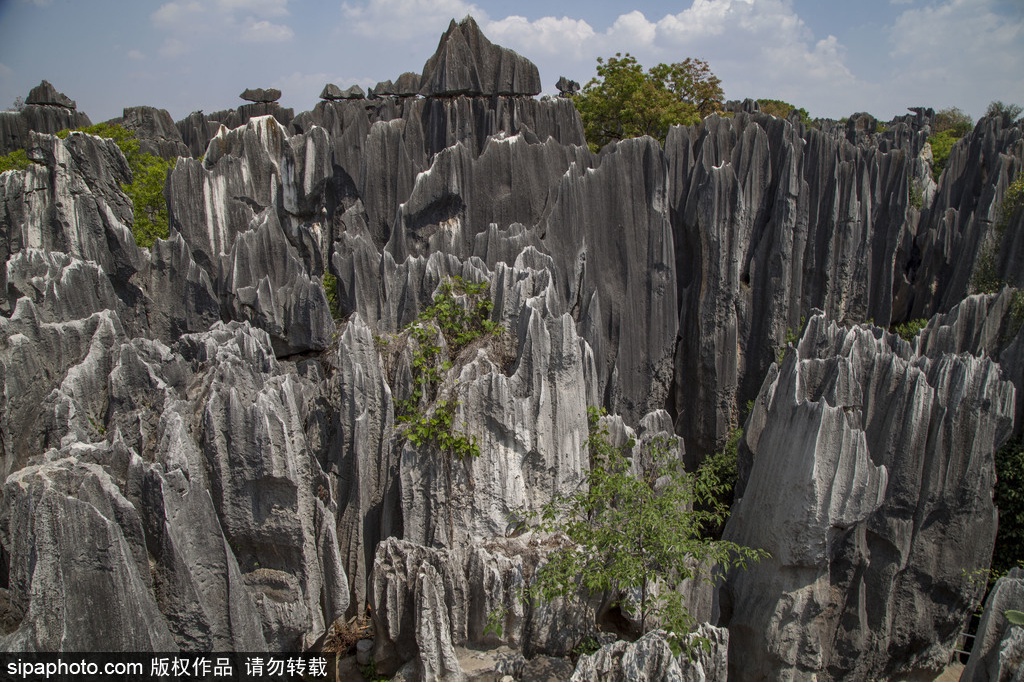 云南石林距离昆明不远,如果你走进石林,一直走到石林的中央,向四周看,刹那间,你会觉得自己似乎进入了另一个空间,一个与平时所处的地方完全不同的空间。