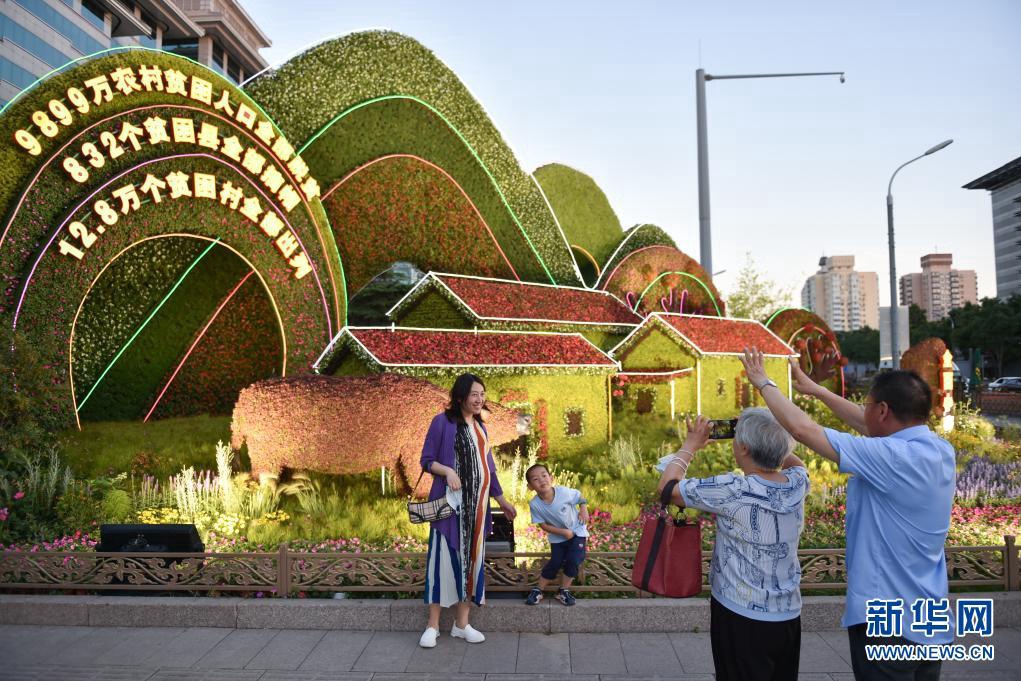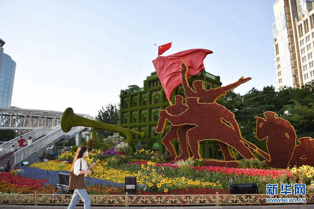 近日,北京市长安街沿线多个主要交通路口布置了立体花坛景观,吸引不少市民和游客前来观赏拍照。