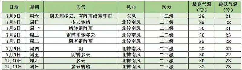 由于近期冷涡系统活跃,预计5到7号雨水还将再次光临,夏日晴雨转换快,请市民常备雨具,并及时关注临近预报。