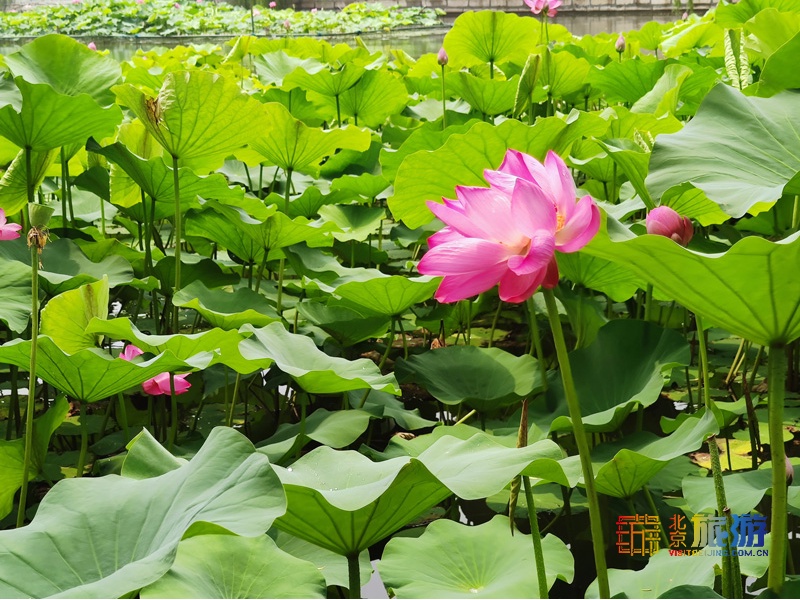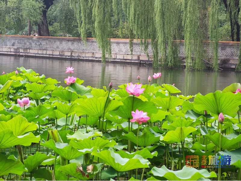 北海公园的荷花湖有8000平米,从南门进入亭亭玉立的荷花便映入眼帘,这里是北海公园最佳的赏荷之地,主要的荷花品种为白洋淀红莲、太空莲,它们花型硕大,拍出照片极其好看。
