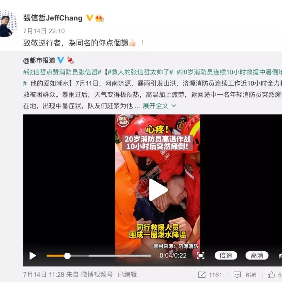 小编前两天看到这样一条新闻,消防员张信哲连续救援10小时中暑倒地,醒来却问队长“我是不是给你丢人了?”让许多网友心疼又感动,就连歌手张信哲也为他发微博点赞。