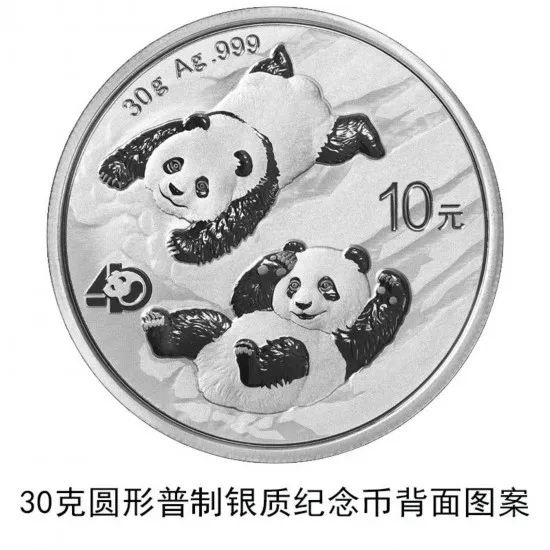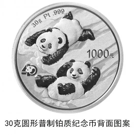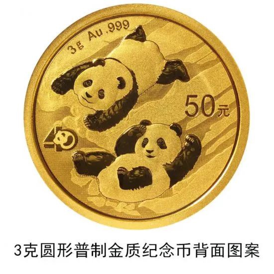 据介绍,该套贵金属纪念币正面图案均为北京天坛祈年殿,并刊国名、年号;背面图案均为大熊猫滑雪嬉戏场景,辅以“熊猫金币发行40周年标识”元素,并刊面额、重量及成色。