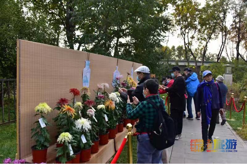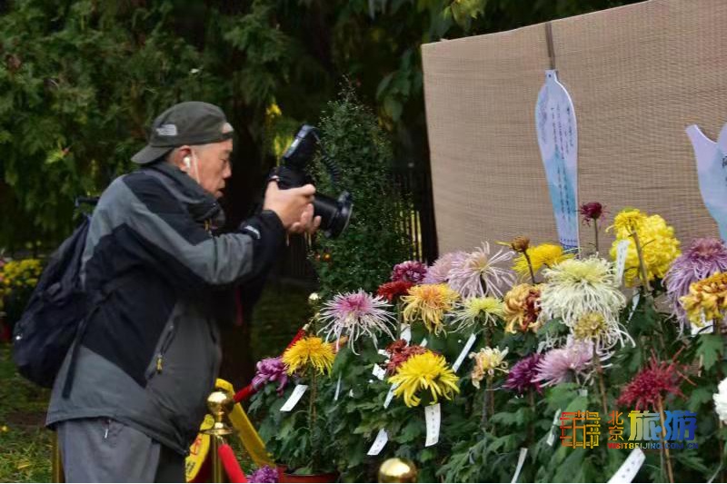 在祈年殿景区的祈年门西侧看到,公园围绕“听菊、咏菊、闻菊、画菊”等不同主题,设置四个展棚。