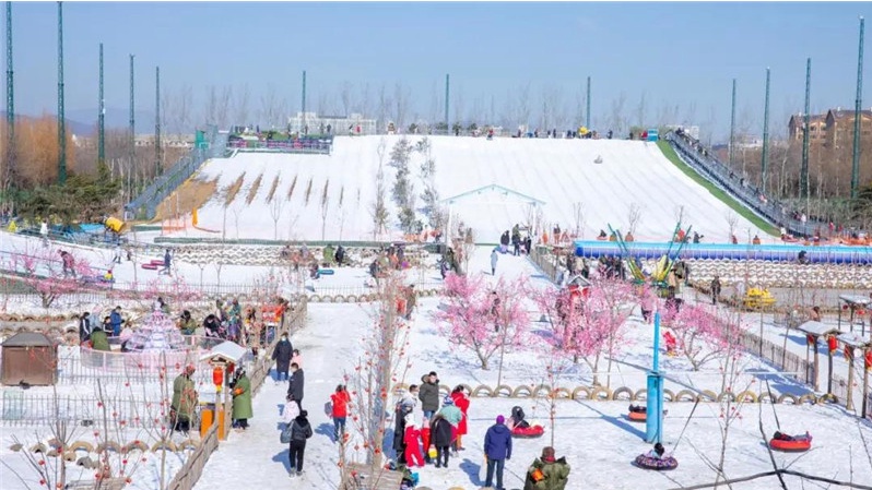 北京南宫旅游景区冰雪奇幻小镇的超大雪场占地9万平方米,拥有39项冰雪娱乐项目。