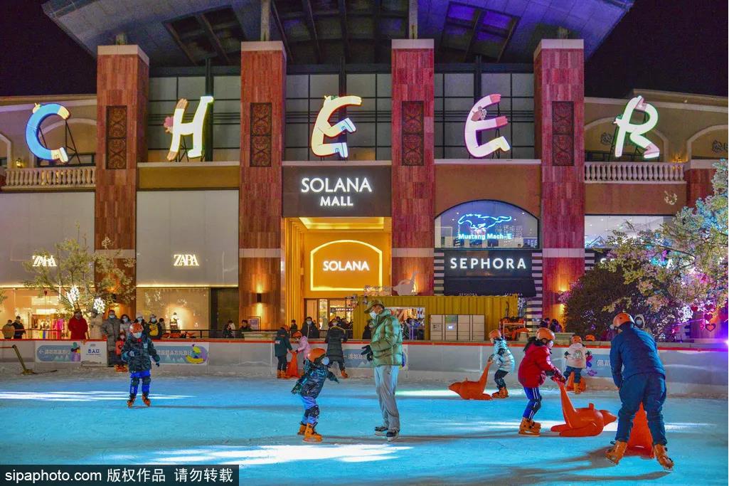 元宵节之夜,斑斓夺目的璀璨灯光,扮靓了蓝色港湾,小朋友们在冰场上轻舞飞扬,享受着冰上运动的快乐。