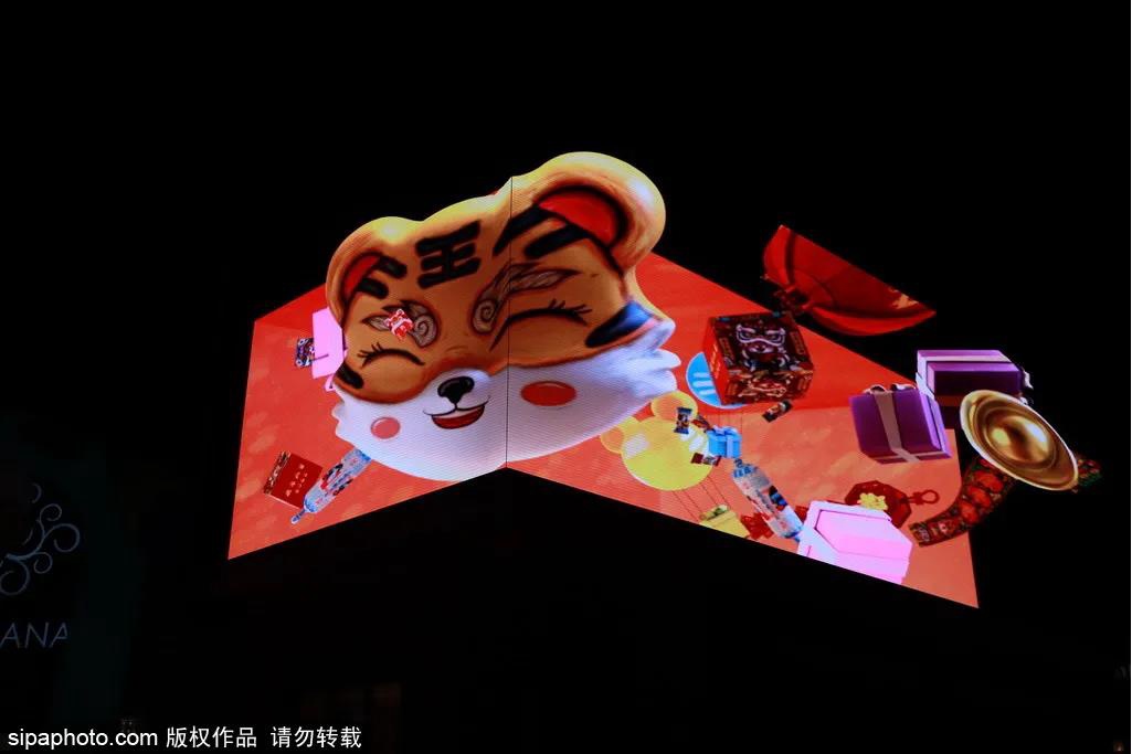 还有3D裸眼大屏“不老虎”,小老虎在空中欢快地跳跃。新的一年,虎虎生威,让游客在购物、散步的同时,心情更加放松愉快。
