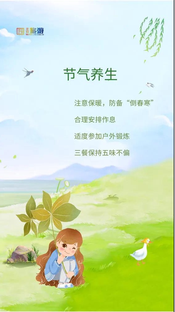 雨水时节气温回升较快,但冷空气活动频繁“倒春寒”时有发生,仍要注意保暖,雨水落了雨,阴阴沉沉到谷雨,此时运动要循序渐进,适当参加户外锻炼。