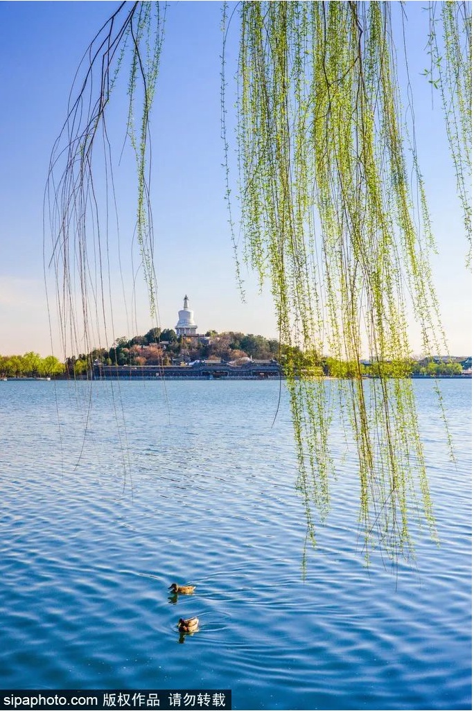 继续转向文津街,路过北海公园、故宫和景山公园,春风吹拂过蔚蓝色的湖面,荡漾起微微的涟漪,阳光一点也不灼热,不禁让人回忆起泛舟北海的快乐童年时光。