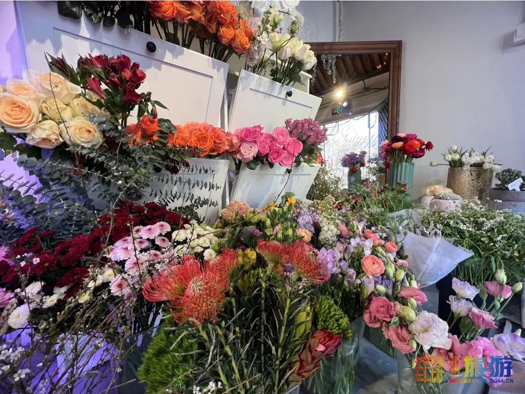 西厢房是一家花店,小雏菊、香槟玫瑰、白色蝴蝶兰……缤纷的花束在这个小屋提前勾画出春季里繁花似锦的模样。