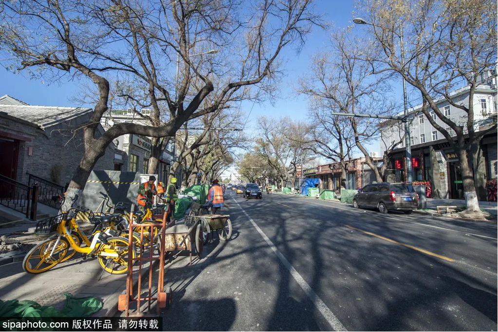 晴朗的蓝天白云下,妙应寺的白塔映红墙,自由穿梭在胡同里,遥望百年的沧桑历史,骑上一辆车,向着西什库教堂出发。