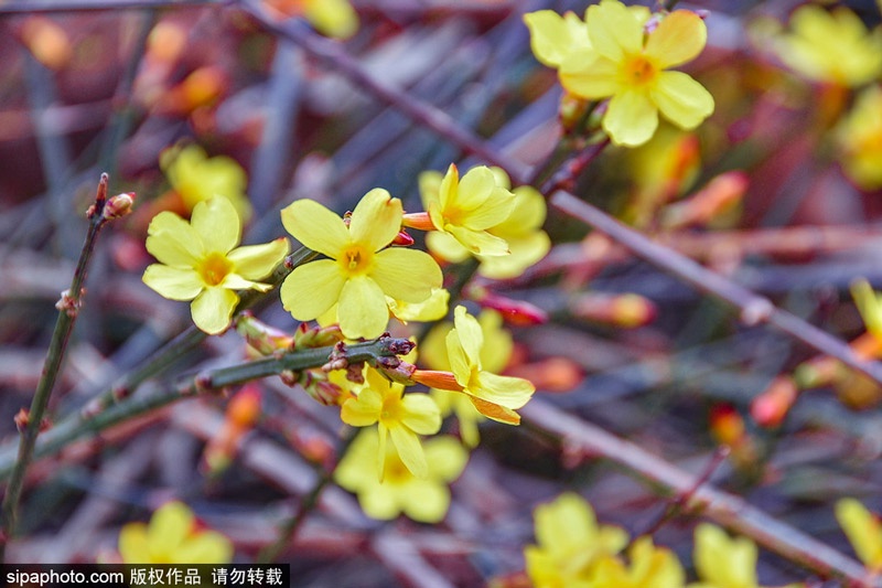 迎春花喜欢在阳光充足,气候温暖湿润的环境下生长。因其在百花之中开花最早,花后即迎来百花齐放的春天而得名。