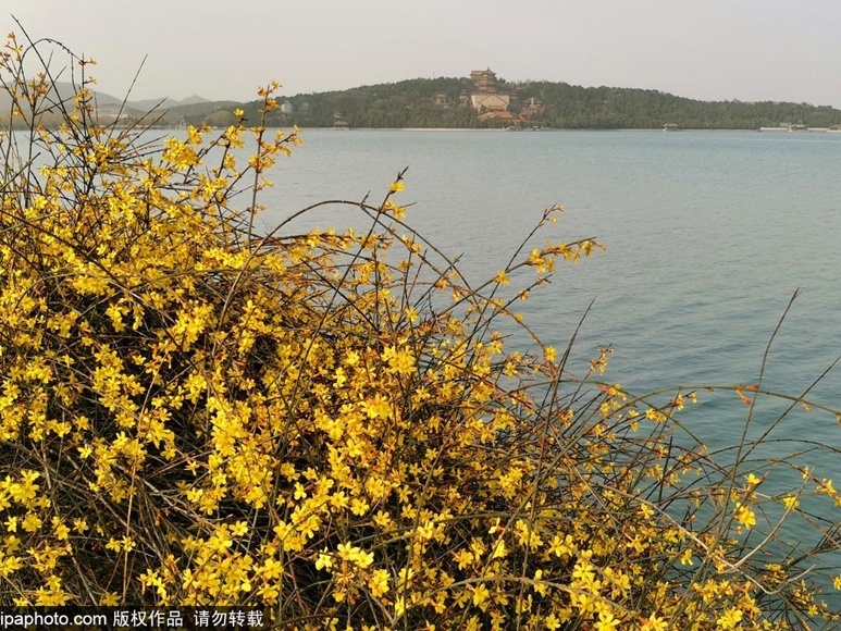 迎春花开放之际,株型铺散,柔枝拱垂,金黄可爱。盛开之时满目灿烂,与园林建筑、湖光山色相映成趣。