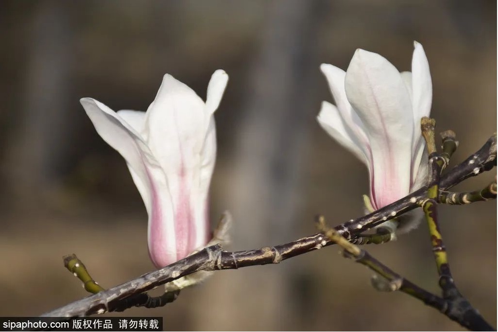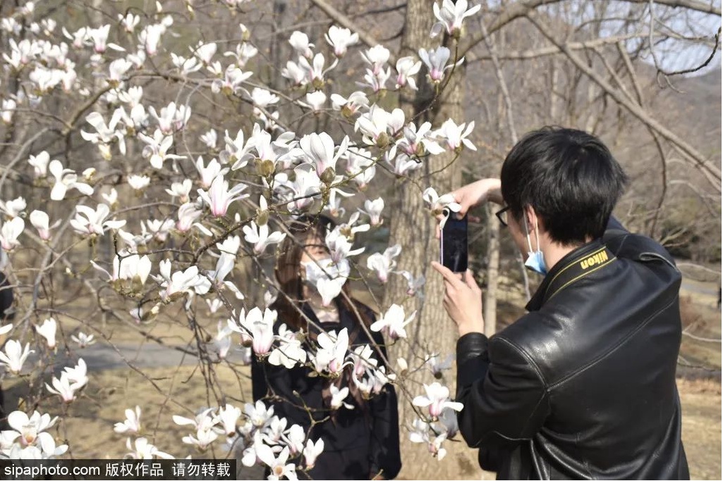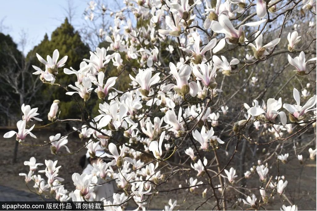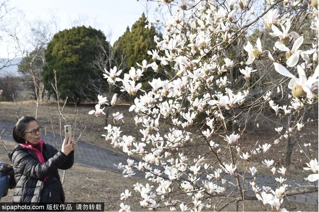 最近,北京植物园望春玉兰绽放,进入最佳观赏期。