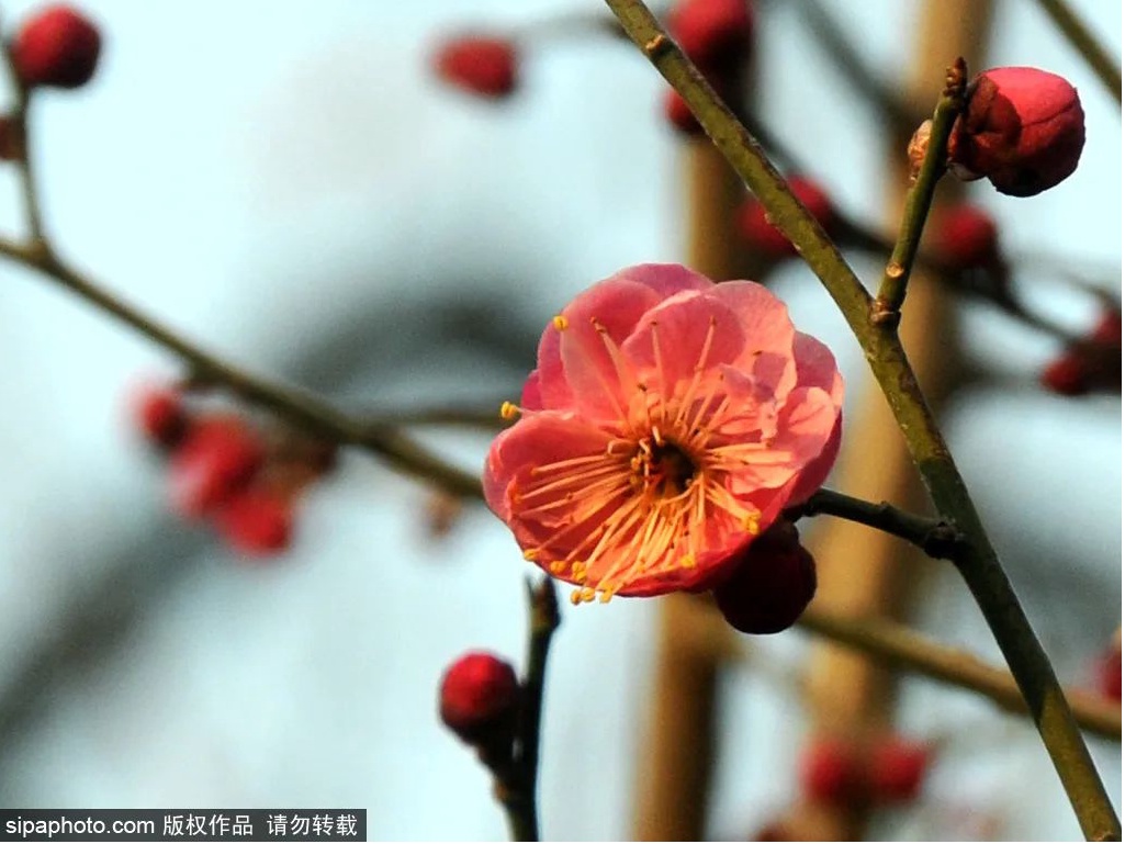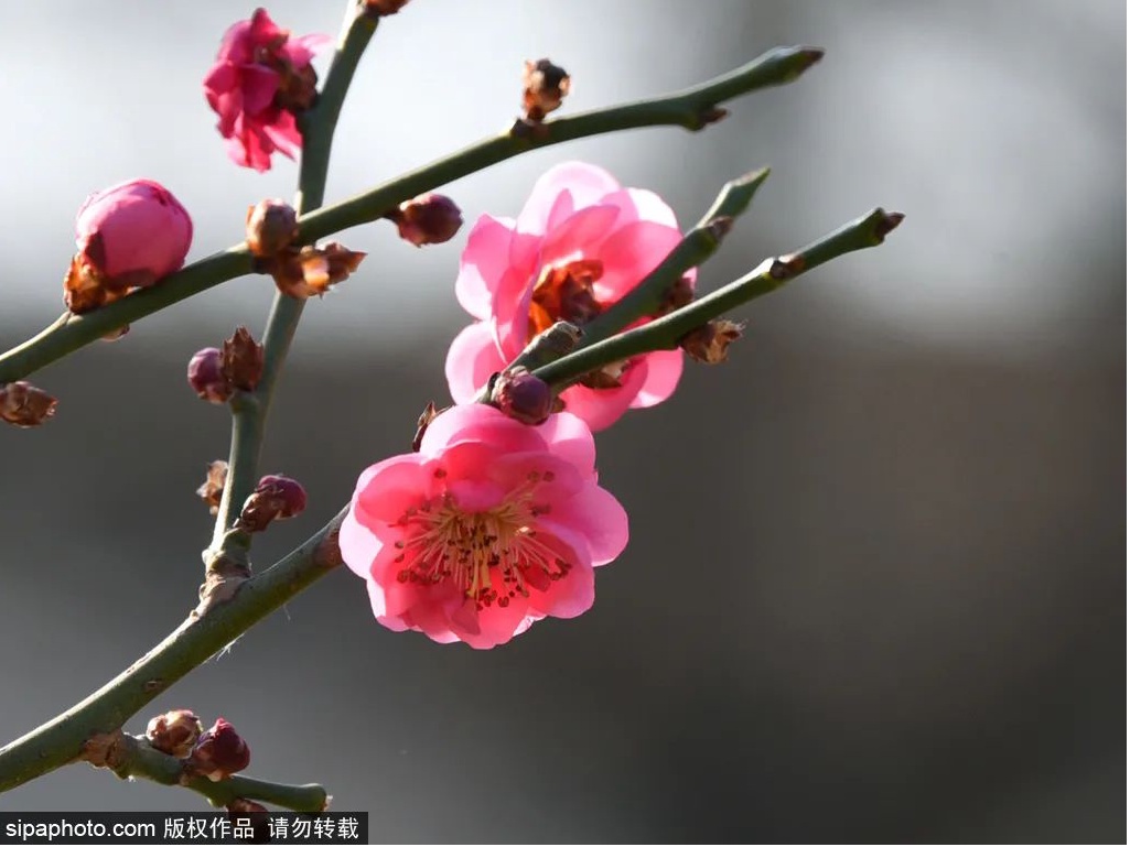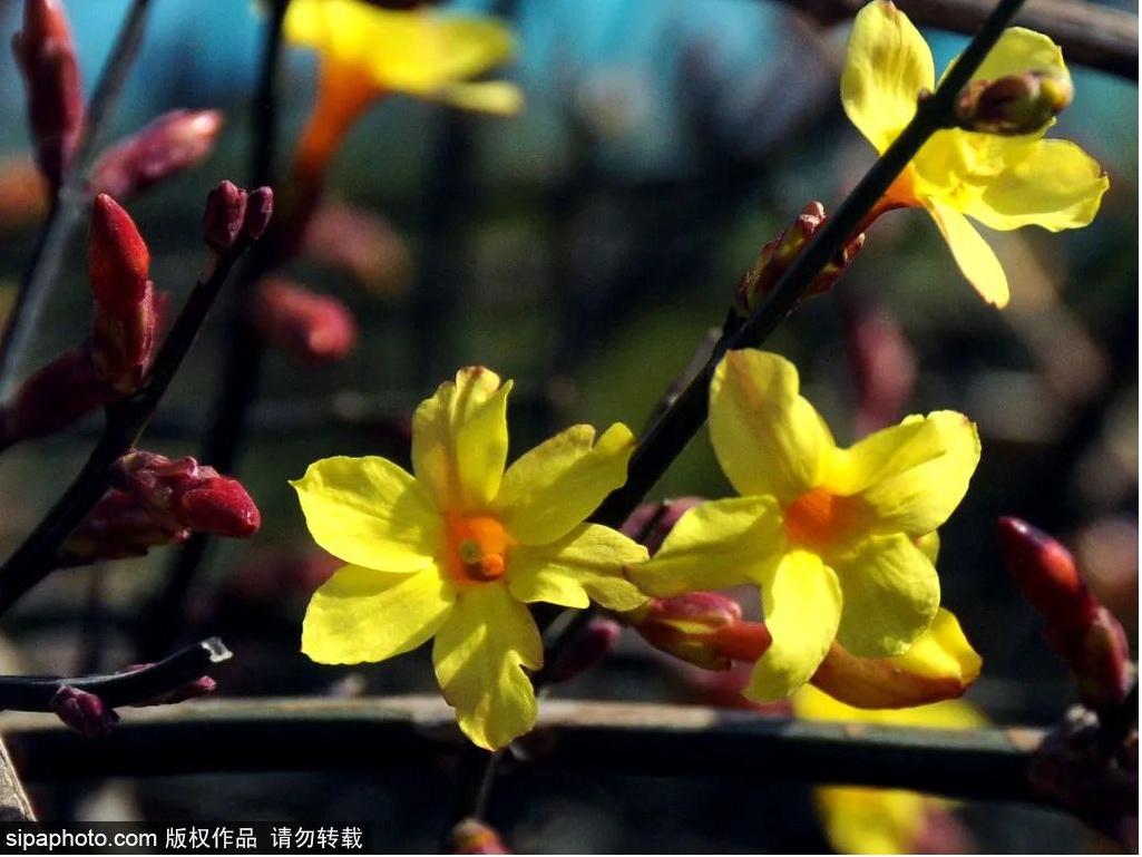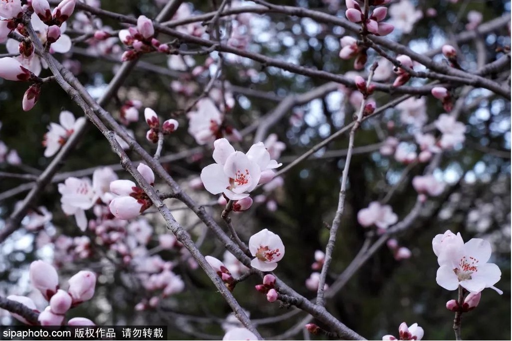 随着气温逐渐回升,玉渊潭公园内已是春意融融,迎春、山桃、梅花悄然绽放。