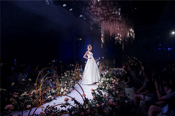 每一场婚礼都是对新人的祝福礼赞,此次“蜜语·谧境”婚礼秀采用精致的金奢系列为装饰主基调,在流光溢彩的灯光秀与轻柔的音乐中置身于璀璨的幸福片场。活动当天,以一场唯美的爱情舞台剧拉开序幕,将宾客带入幸福的谧境中,感受浪漫的甜蜜气息。随后,新郎新娘携手缓缓步入舞台中央,在婚礼殿堂中开启华丽篇章。紧随着一段优美的大提琴旋律,由五克拉创意婚纱、小雅婚纱、葛澜婚纱带来的婚纱秀闪亮登场。