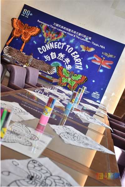 万丽天津宾馆在这一天邀请客人体验了国家非物质文化遗产,也是天津传统民俗之一的“风筝魏”制作。当风筝飞上蓝天之时,也拉近了我们与自然之间的距离,以此来呼吁大家注重环保问题,让蓝天重现。并且在8:30准时关闭外部标牌照明、调暗或关闭非必需的内部照明,在餐厅与酒吧等有需要的公共场所使用烛光照明等。