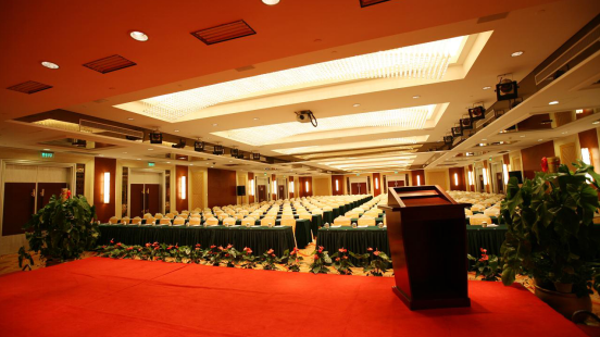 面积近560平米的多功能厅、最多可容纳500余人举办会议。其完整、专业的音响及灯光设备,可供您举办商务会议,中西式标准宴会,冷餐会及300人的展会等。我们期待您的光临!