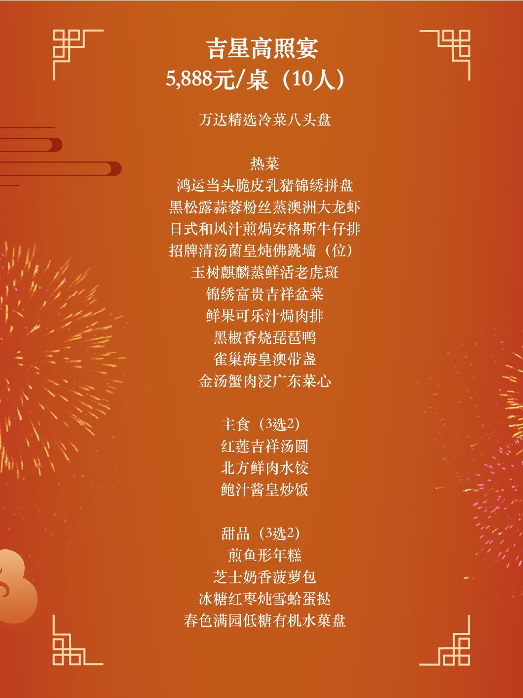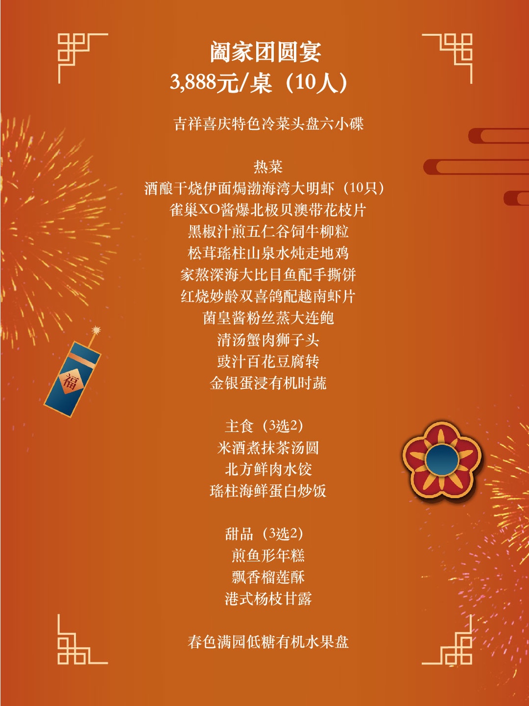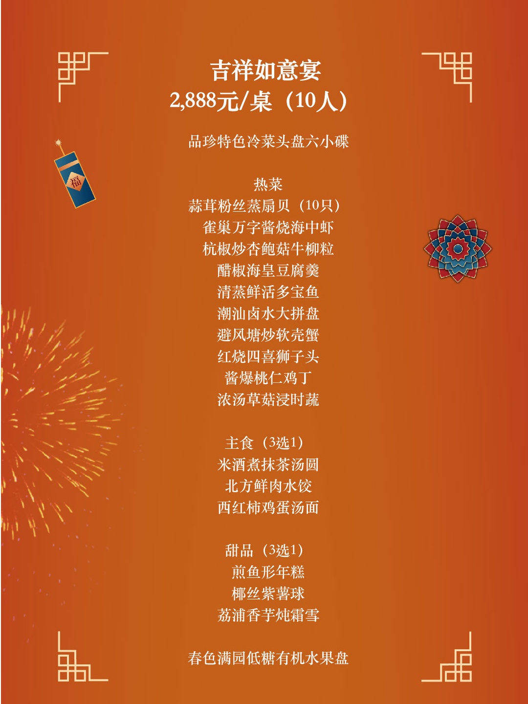 品珍中餐厅 团圆宴 2888元/桌起(10人)(以上价格需增加6%增值税)