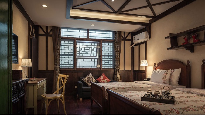 镖局客栈从外面看门脸不大,进去后别有一番天地。客栈房东是地道的江南人,用地道的杭帮菜、舒适的房间来招待去古北水镇游玩的游客。