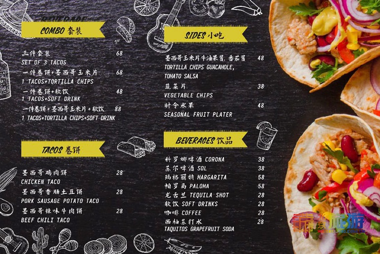 供应时间:Tacos,上午11点至下午4点