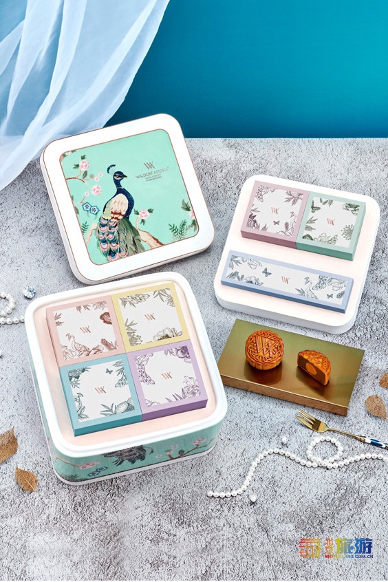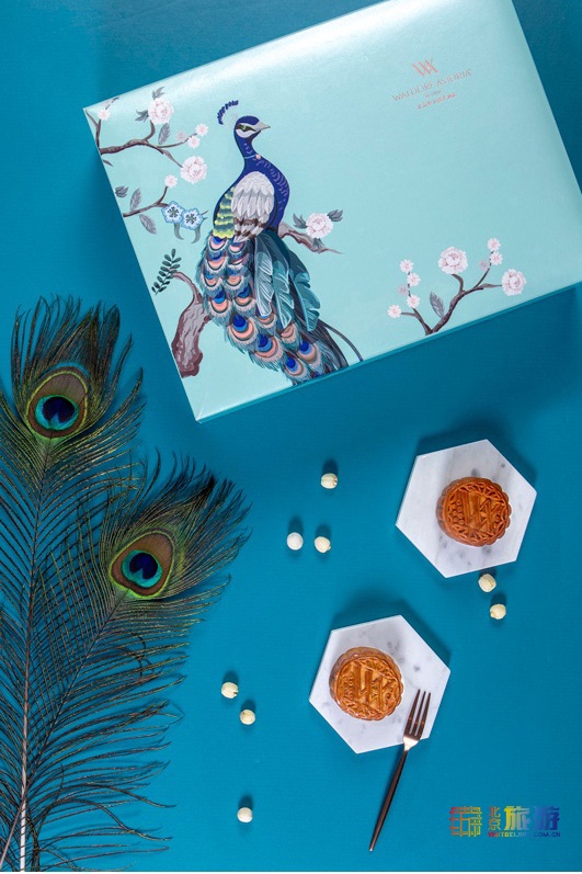 北京华尔道夫酒店致力于为宾客带来别具一格、非凡出众的体验。尤其是在美食的传承与创新上,华尔道夫始终以兼具创新与融合的思维,不停赋予传统美食新的活力,给予品味不凡的宾客们难忘铭心的美食体验。此次两款中秋月饼礼盒设计灵感源自华尔道夫独具传奇色彩的羿庭(Peacock Alley孔雀廊),选取象征着高贵、吉祥的“孔雀”纹样优雅呈现于两款别具匠心的礼盒之上,奢华款礼盒采鉴精美瓷器制作工艺 ,浮现的孔雀轻灵、华美,彰显出华尔道夫永恒的经典和优雅韵味;另一款“灵•羽”时尚礼盒,同样以孔雀的妍丽色彩为主调,其高雅悠然的姿态翩然躍于礼盒之上;六枚月饼包装将孔雀羽毛丰富妍丽的色彩巧妙融入其中,奢华优雅与幸福吉祥的寓意尽显得淋漓尽致。