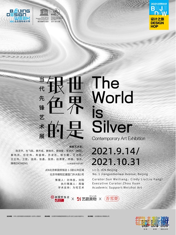 JEN北京新国贸饭店邀请艺葩美物Art ur Life独家呈现本次展览,由策展人孙玮良、刘阳和执行策展人周璇策划的本次展览以银色为主题 ,汇集多位亚洲先锋艺术家作品,以面貌各异的艺术创作,打造出一个梦幻的银色未来感世界,为您带来沉浸式观展体验。